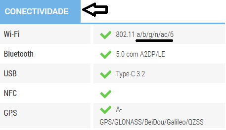 1. Especificações técnicas: Procure pelo modelo no TudoCelular e veja se ele tem suporte a Wi-Fi 6 (às vezes aparece como 802.11ax).